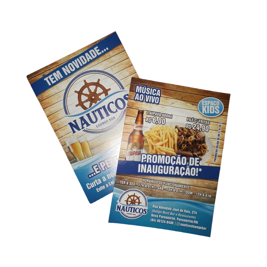 | Material: | Papel Couchê Brilho 90g |